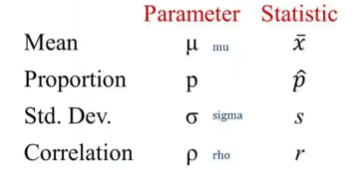 - Statistics (통계량): numbers that summarize data from a sample